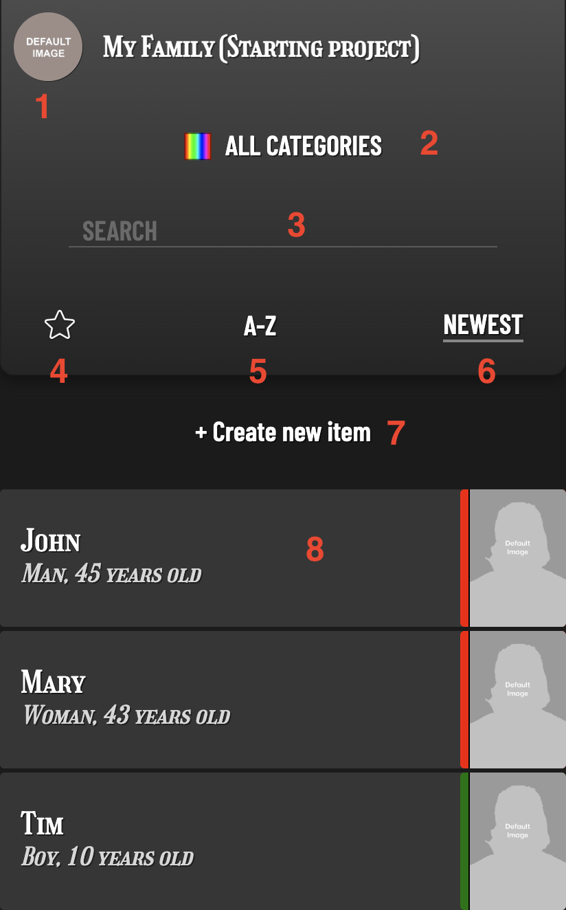 As the number of items grows, it may be easier to sort them into categories. You can assign a category to each item, and filter item lists by category.